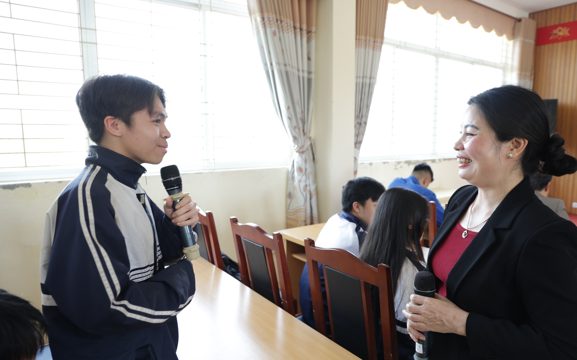 Các cử tri tròn 18 tuổi phấn khởi khi được tham gia hội nghị. Ảnh: PV